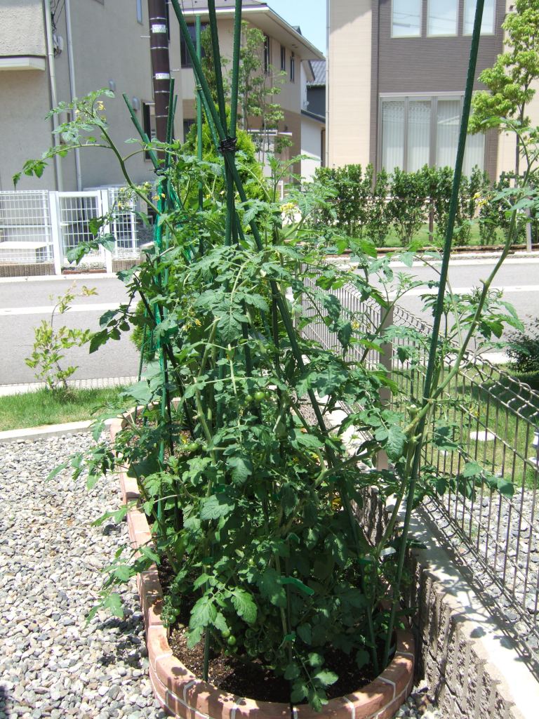 我が家の菜園のミニトマトはぐんぐん大きくなって、たくさん実がなっています