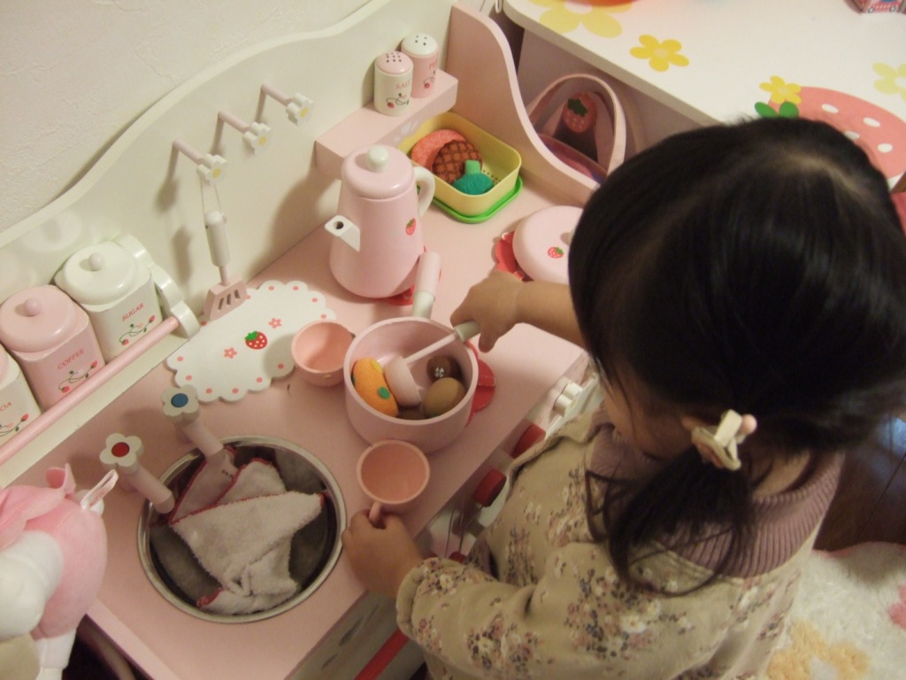 いつも食べる専門だったさくちゃんも、この頃ママが料理する様子をキッチンに椅子を持ってきて眺めています