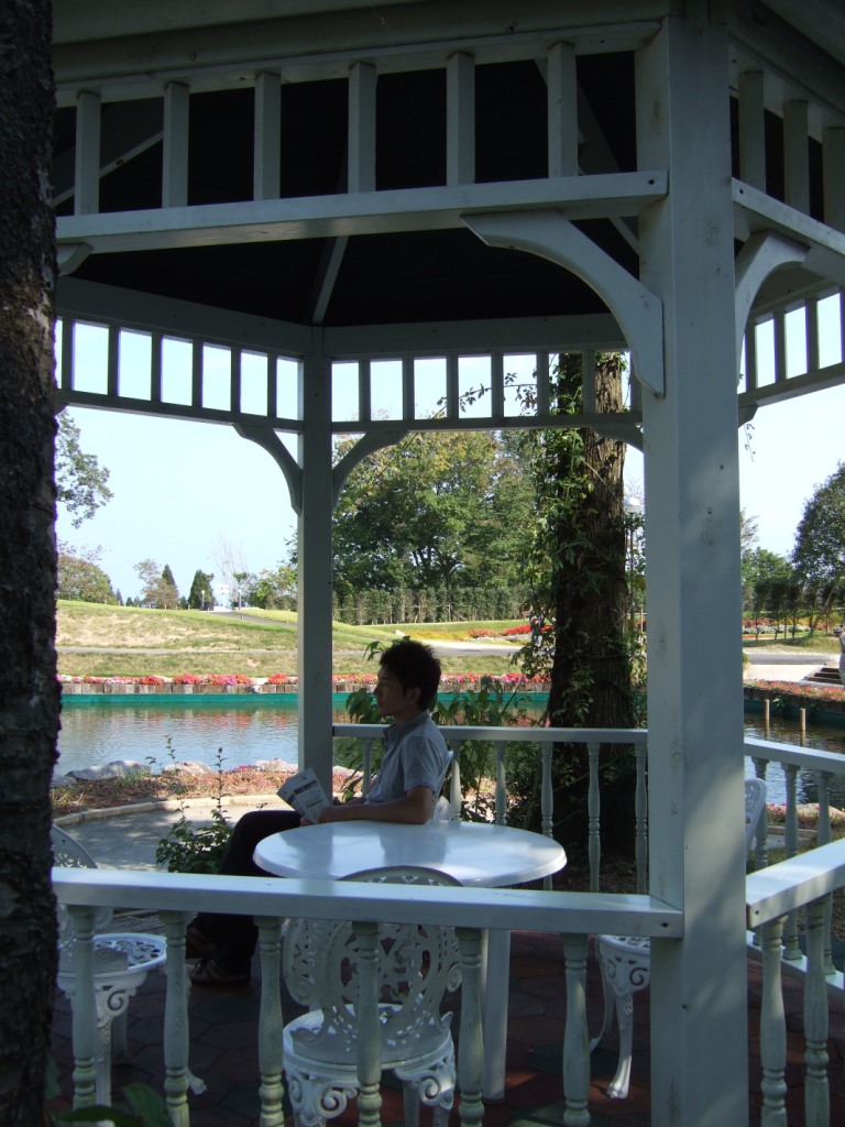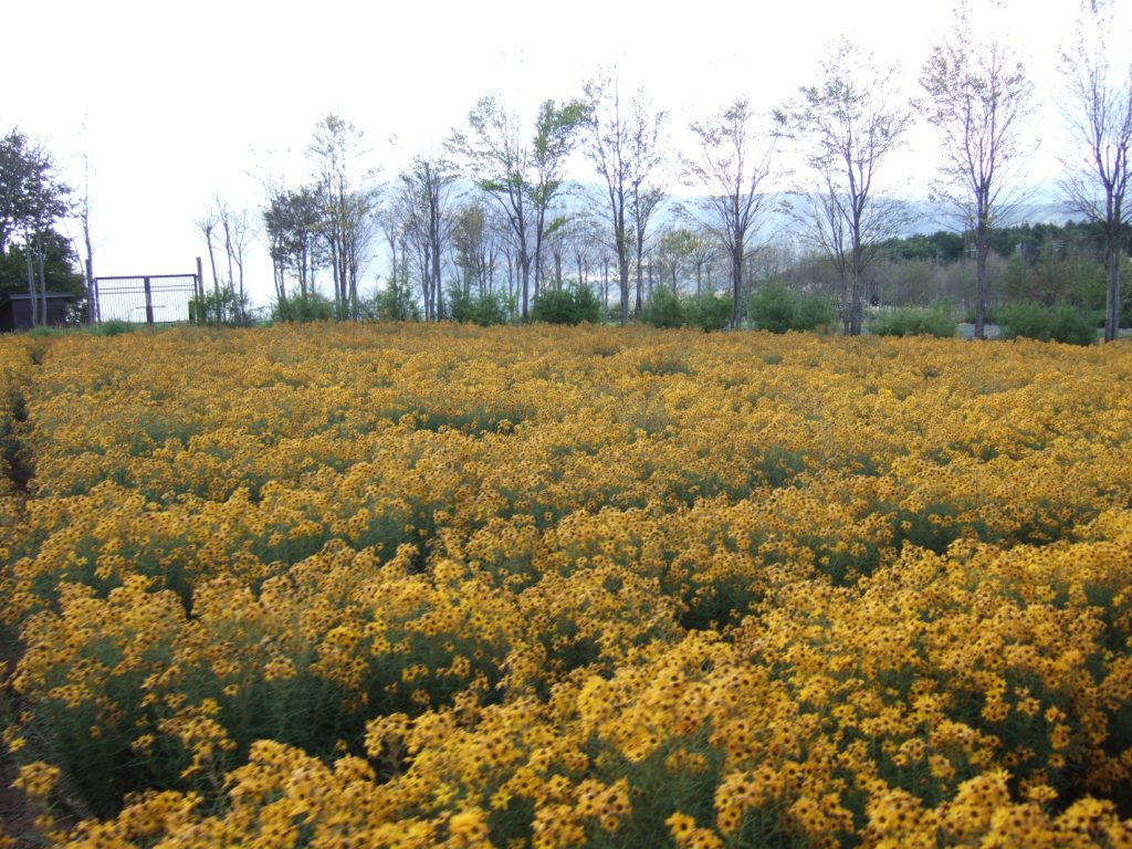 広い園内には芝生広場もあり、遠くにお花畑が広がっていました