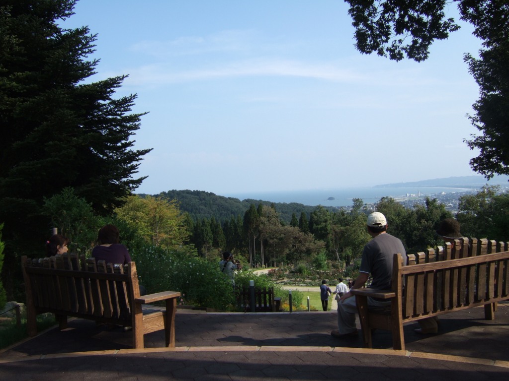 ローズガーデンや海まで見渡すことのできる場所にはベンチが置かれていて、来た方々は座ってゆっくり景色やお庭を眺めていました