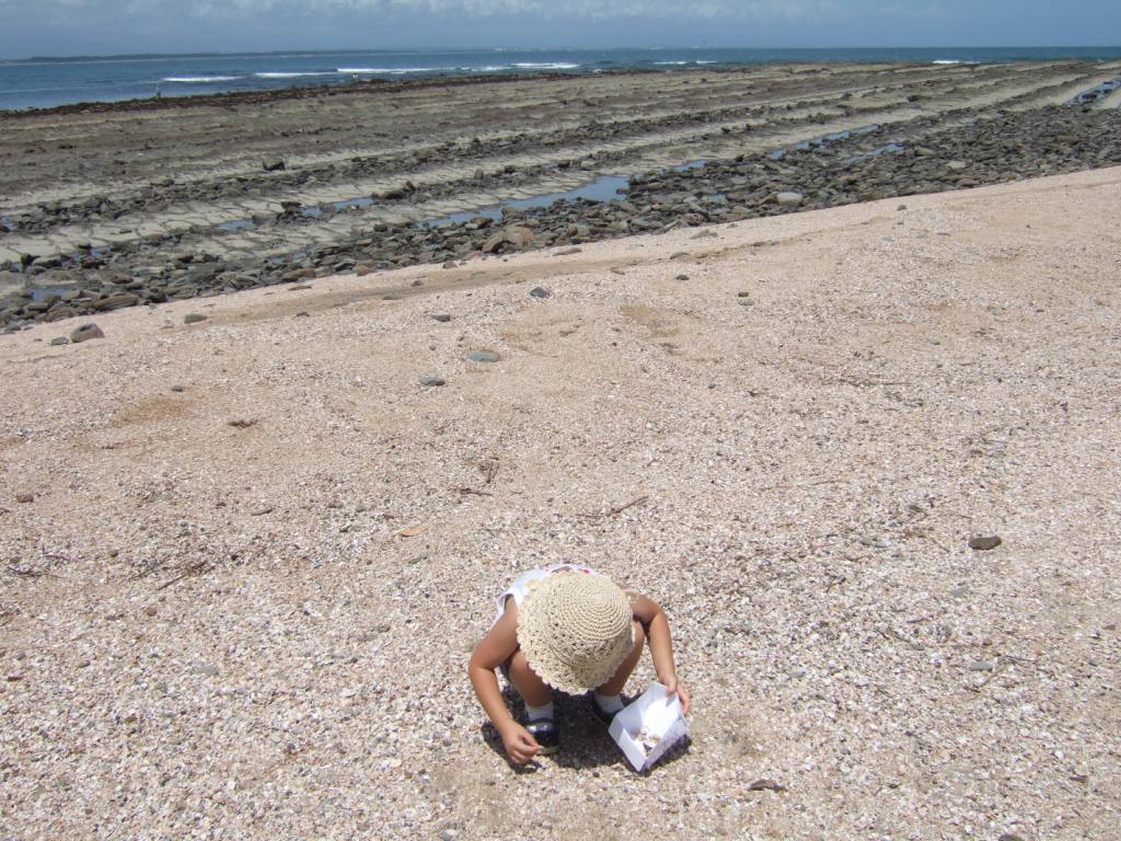 お参りを終えて戻ってみると、さくちゃんが貝殻をたくさん集めて嬉しそうに待ってました