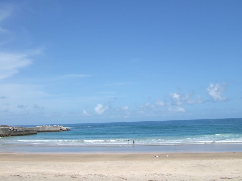 海岸沿いは砂浜もあったり岩場もあったり