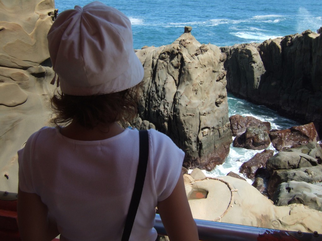 日南市鵜戸の日向灘に面した、洞窟の中にある神社で海を見下ろしながら歩いて本堂に向かいます