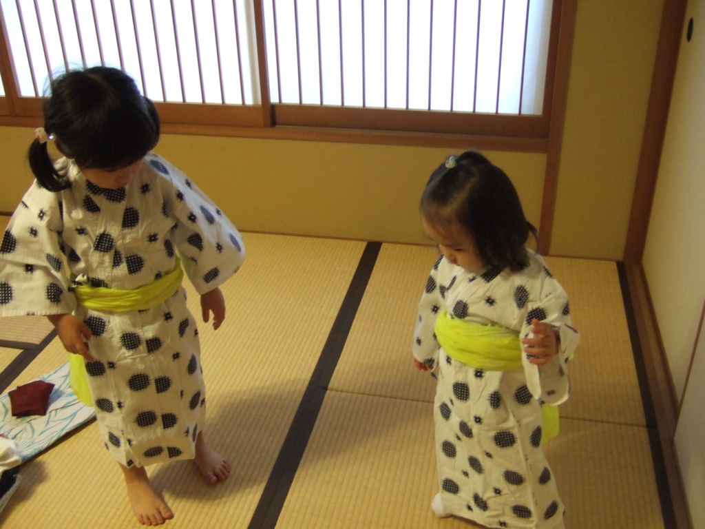 子供用の浴衣を着ておおはしゃぎ