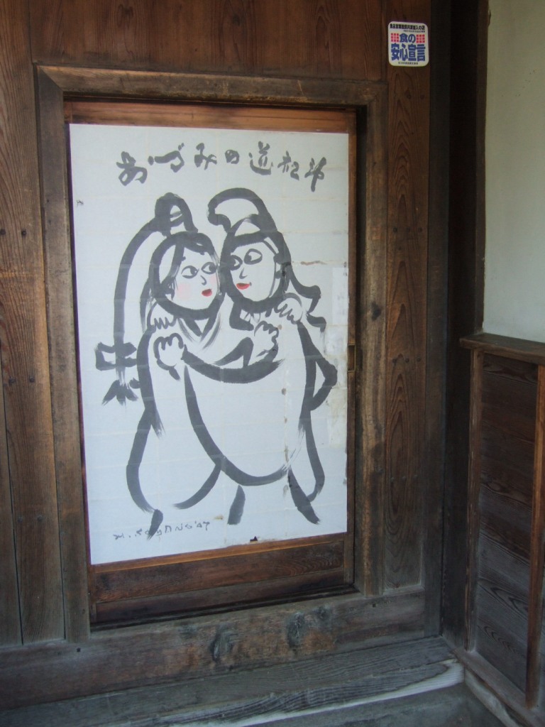 入り口のドアは安曇野で有名な道祖神の絵でした