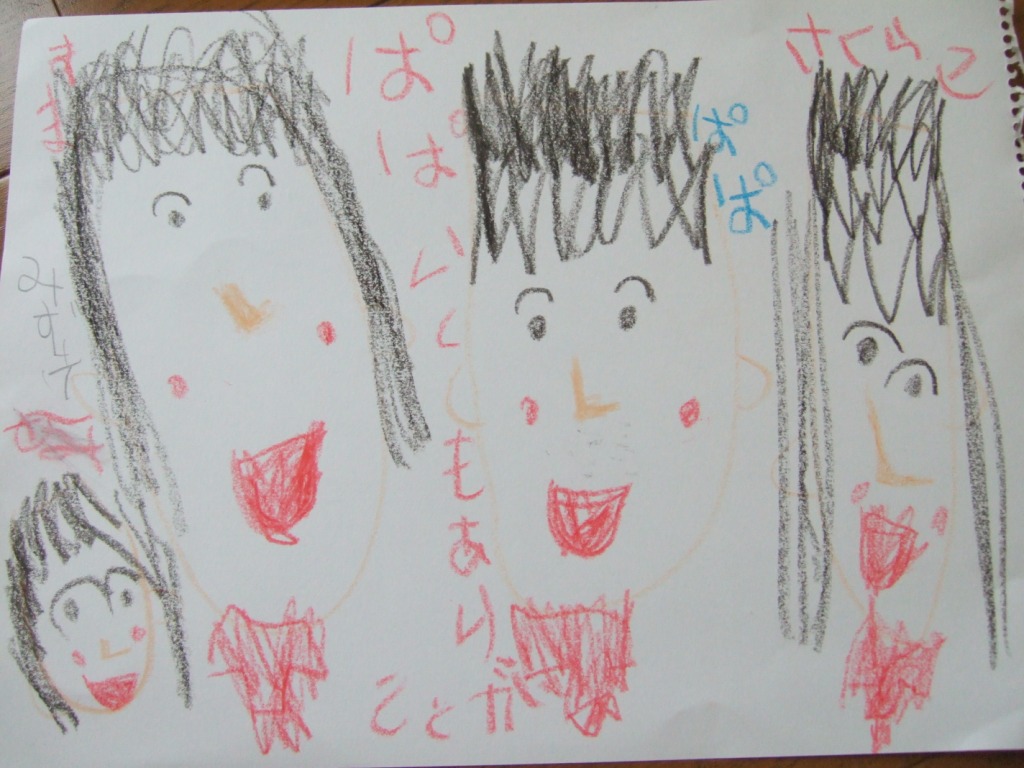 さくちゃんが絵を描くのが好きなのを知った友人が、さくちゃんとみーちゃんにケンカにならないように二つずつお絵かき帳とクレヨンを用意してくれていて、その心使いがまたとても嬉しかったです