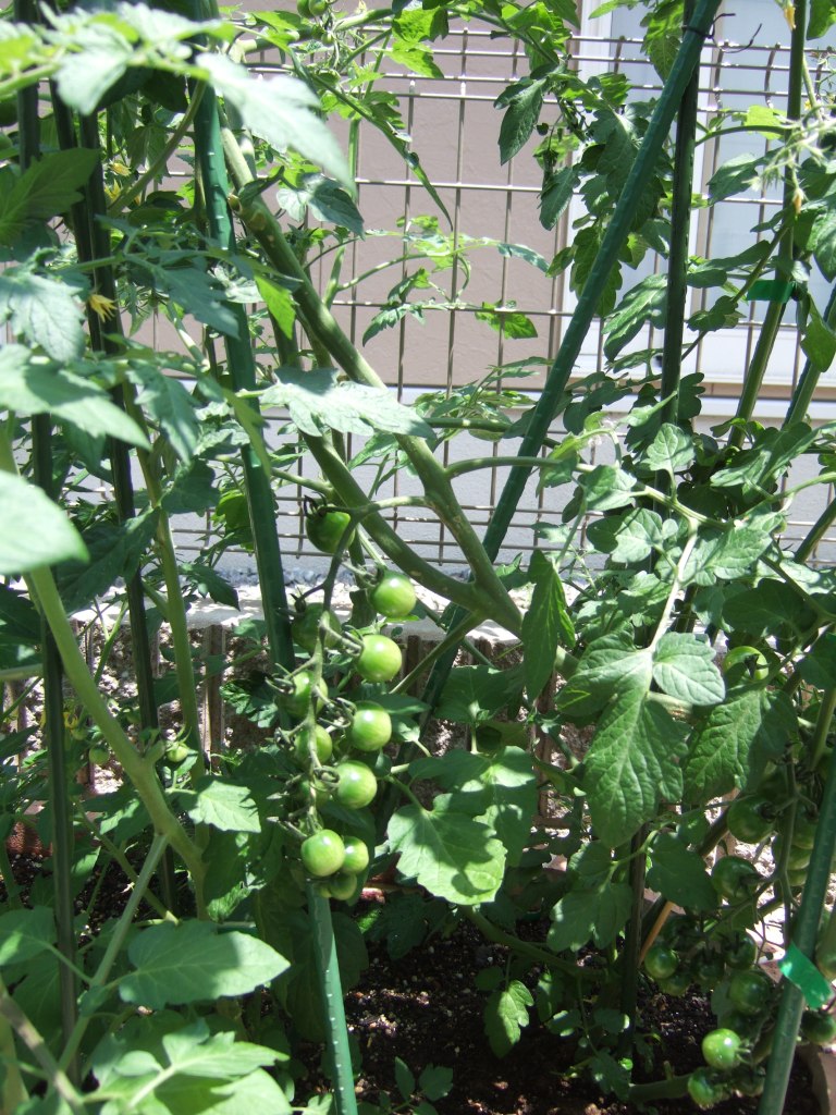我が家の菜園のミニトマトはぐんぐん大きくなって、たくさん実がなっています