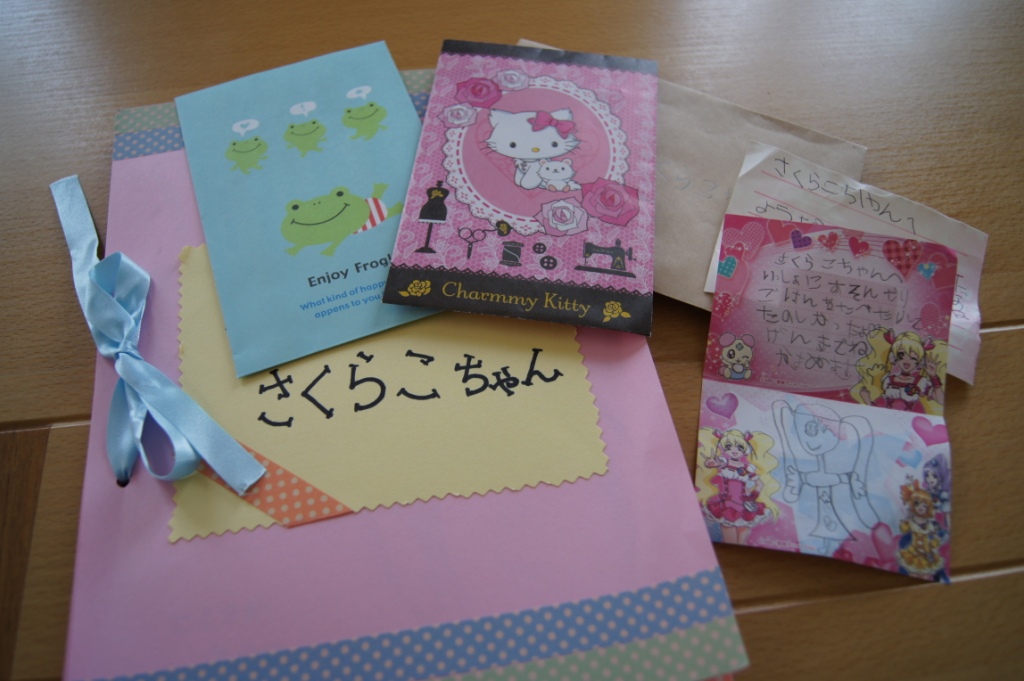 さくちゃんが、くま組のみんなのことを忘れないように・・・宮崎の幼稚園に行っても頑張ってね・・・そんな想いをこめて、みんなが自分の似顔絵を描いてくれたそうで、それを先生がかわいく貼り付けて冊子にしてくれた素敵な物を持ち帰ってきました。その他に、お友達からもらったお手紙も・・・