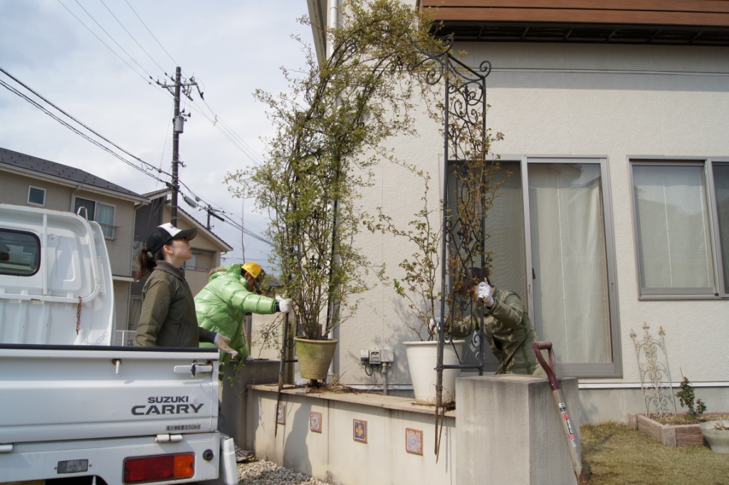 毎年きれいなバラを咲かせていたつるバラのアーチも週末に引っ越しました