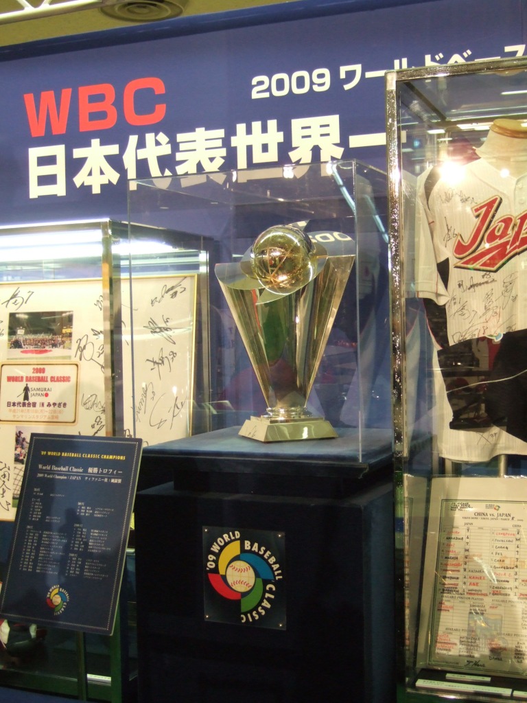 空港内で、WBCの優勝トロフィーが展示されていました