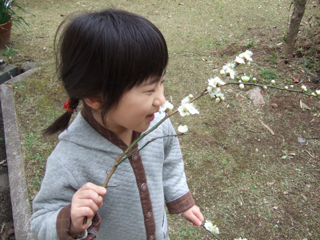 鹿児島県にある、パパの祖母のおうちの庭の梅の花もとってもきれいに咲いていました