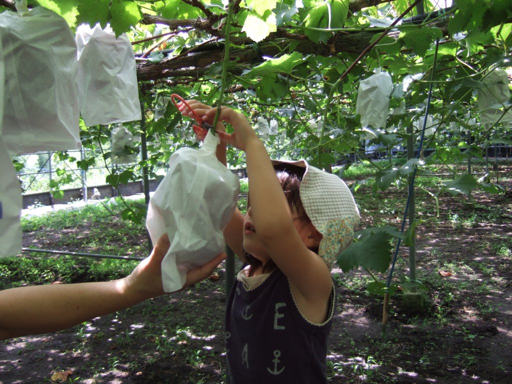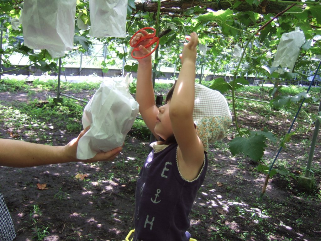 さくちゃんもぶどう狩りに挑戦です