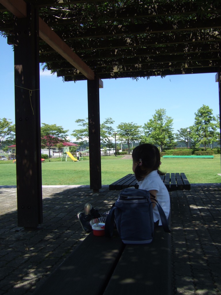 たくさん遊んだ後は、日陰で一休み